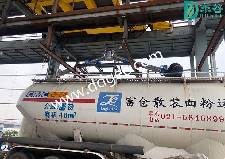 2.該系統廣泛應用于糧食、食品、化工、醫藥等粉體散裝發(fā)放領域,將面粉、淀粉、玉米粉等粉料散裝裝入粉體罐裝車或將小麥、玉米、稻谷等原糧和雜質、麩皮等半成品顆粒料室外打包、裝車,能根據卸料情況自動伸縮,解決工作場所粉塵外溢飛揚問題。